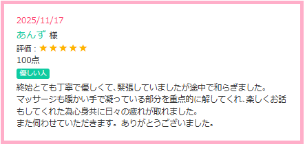 口コミ対応セラピストは・・・