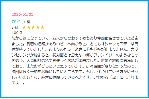 口コミ対応セラピストは・・・