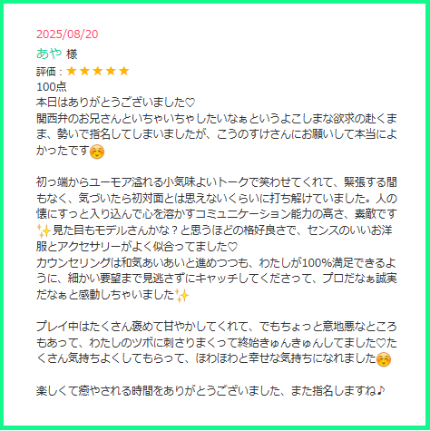 口コミ対応セラピストは・・・