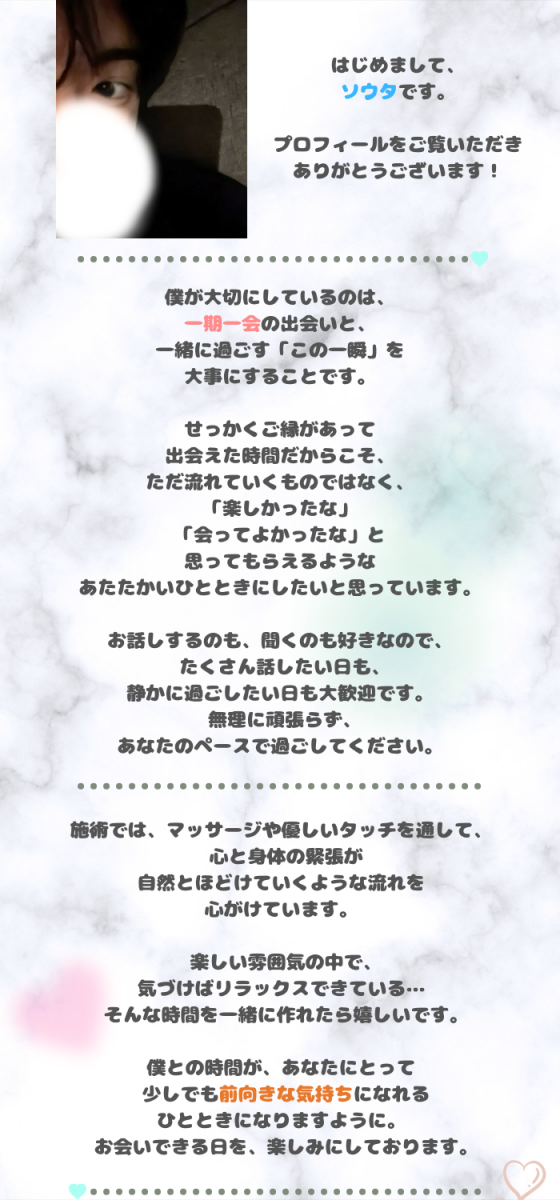 ※ご希望があれば恋人プレイ等も可能ですので男性セラピストにお申し付け下さい。