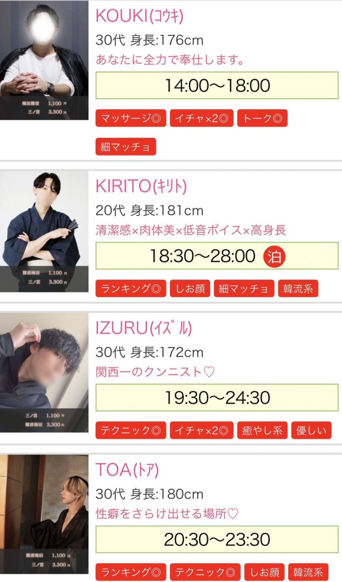 #大阪#女風#秘密基地#なんば#難波#神戸#三ノ宮#梅田#女性用風俗