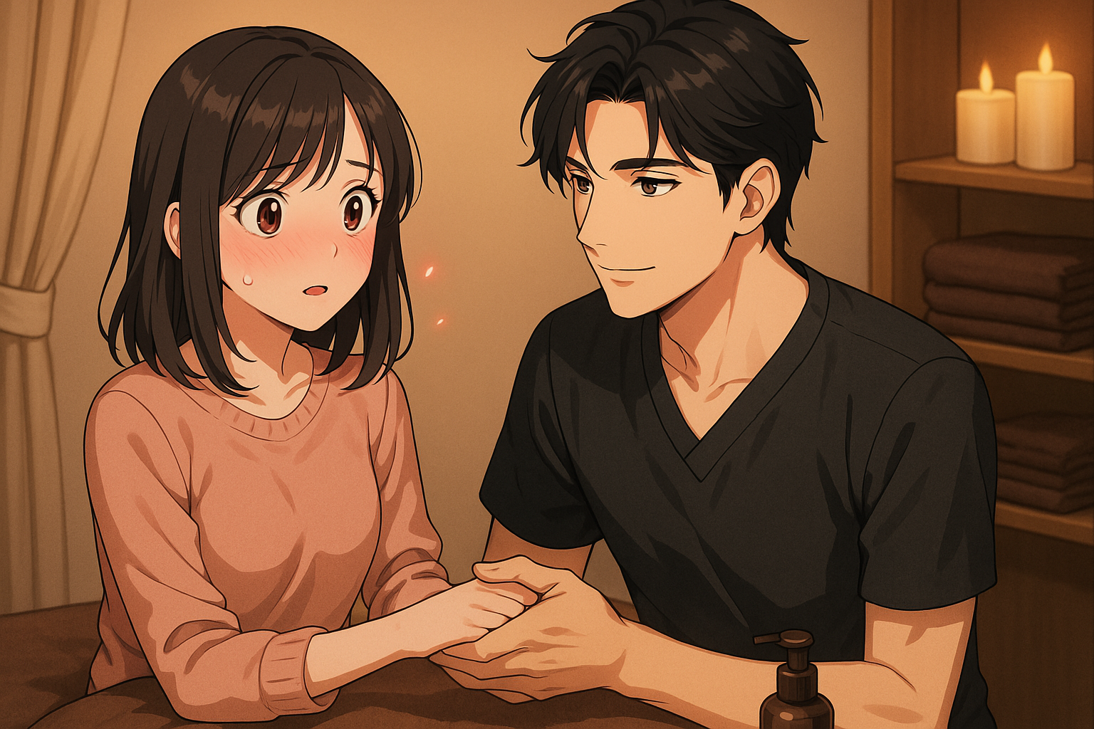 ある夜の施術中、彼が私の手を軽く包み込んだ。